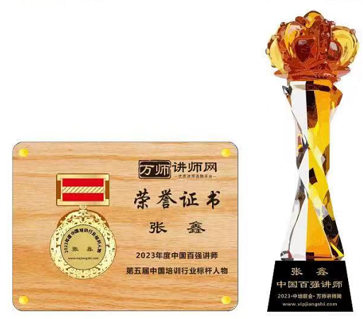 恭喜張鑫老師榮獲萬師講師網2023年度中國百強講師 暨第五屆中國培訓行業標桿人物