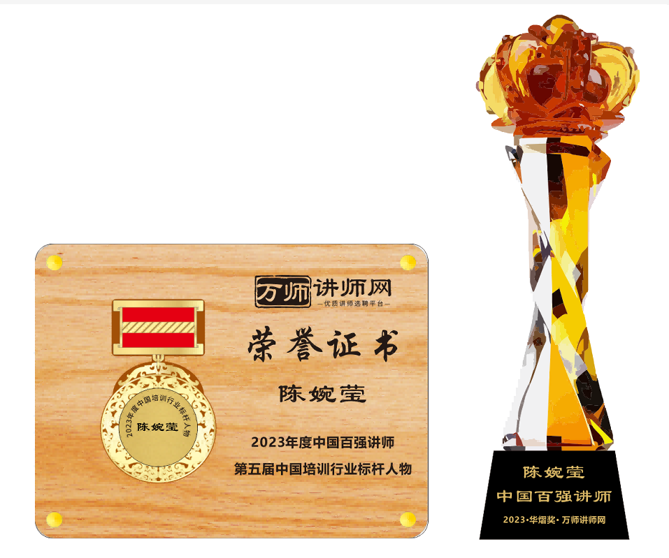 恭喜陳婉瑩老師榮獲萬師講師網2023年度中國百強講師 暨第五屆中國培訓行業標桿人物