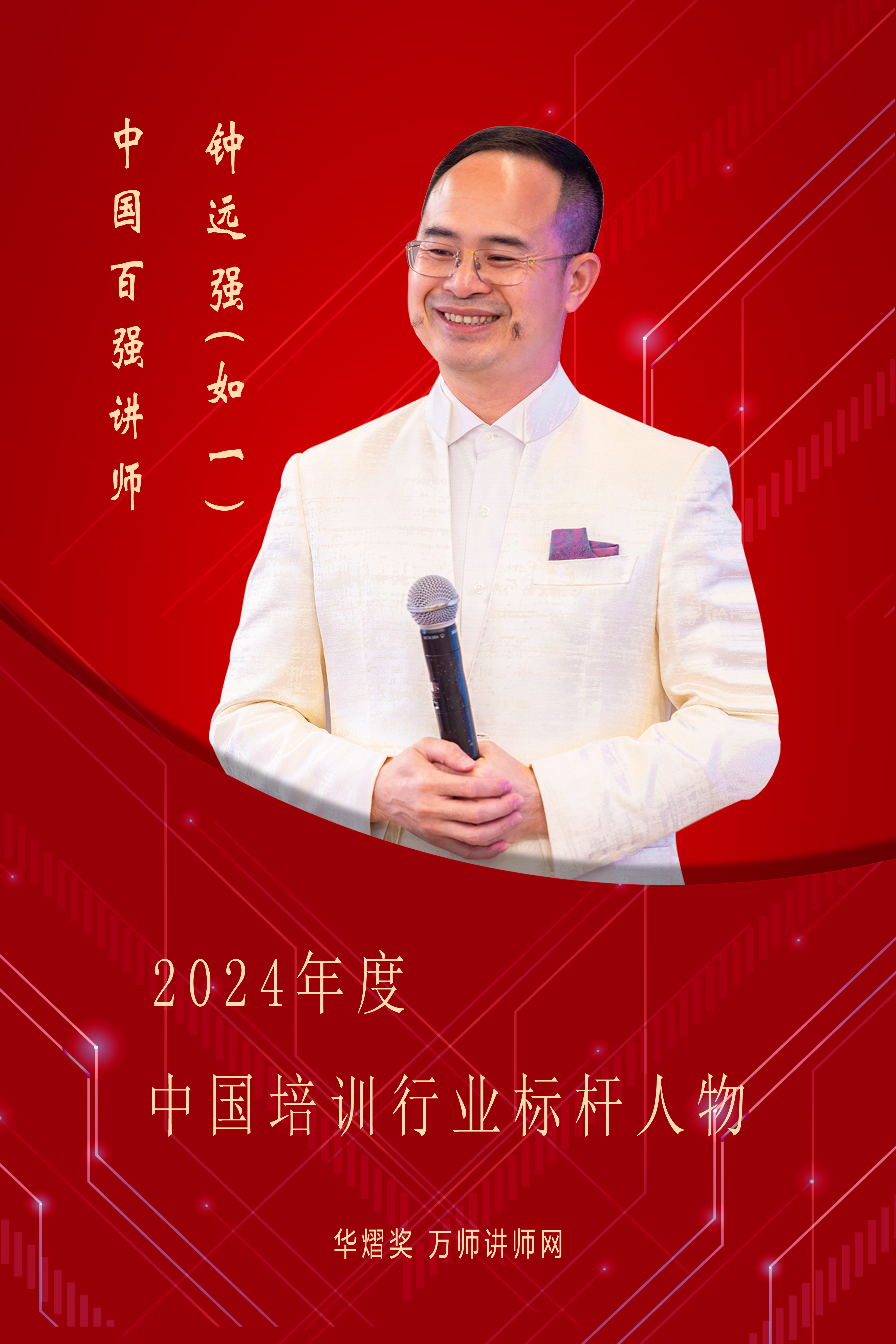 恭喜鐘遠強(如一)老師獲萬師講師網2024年度中國百強講師 暨第五屆中國培訓行業標桿人物
